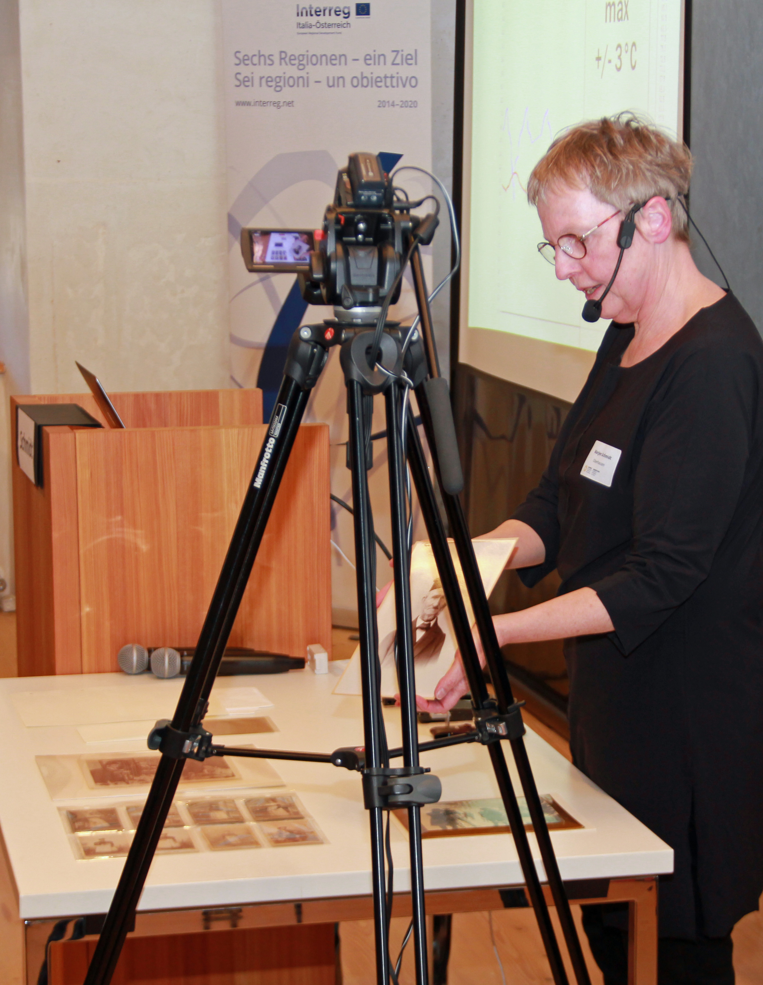 Am Vormittag referierten die Experten Roland Sila (Tiroler Landesmuseen) und Bernhard Mertelseder (Tiroler Bildungsforum) – beides Assoziierte Partner des Interreg-Projekts „Lichtbild“ – zum Thema. Der Nachmittag gestaltete sich praxisnahe mit der Einführung in die konservatorische Aufbewahrung alter Fotografien durch die Fotorestauratorin Marjen Schmidt aus Deutschland.