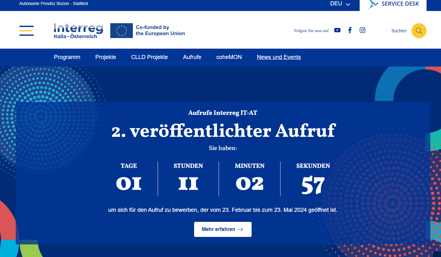Il nuovo sito www.interreg.net sarà una piattaforma più moderna, efficiente e user-friendly che continuerà a fornirvi tutte le informazioni e i documenti importanti sul programma, sui progetti e sugli eventi. Potrete utilizzare un'interfaccia utente migliorata e una funzione di ricerca per trovare rapidamente ciò che state cercando.